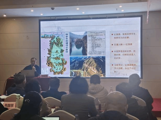 10月17日上午,培训班举行开班仪式。林州市山渠文化教育培训中心主任王俊德致欢迎辞,对东北师范大学一行的到来表示欢迎,对培训内容进行介绍。东北师范大学党委常委、统战部部长解玲在动员讲话中表示:“红旗渠精神是中国共产党带领人民艰苦奋斗、自强不息伟大实践的生动写照,是中华民族不可磨灭的历史记忆,更是激励我们砥砺前行、开创未来的强大精神动力。在国家建设中国式现代化强国的新征程中,在学校建设中国特色世界一流师范大学的实践中,重温和学习‘红旗渠精神’,具有特殊的现实意义”。她强调,我们要深刻感悟与学习弘扬红旗渠精神,既要学习林县人民那种不认命、不服输、敢于战天斗地的英雄气概,还要学习团结协作、无私奉献的高尚品格;要深入开展国情考察,增强服务社会的责任感与使命感,要围绕国家重大战略需求和地方经济社会发展中的重点难点问题,深入思考,将考察学习的成果转化为参政议政、服务发展的真知灼见,展现新时代知识分子的智慧与担当。解玲希望,通过沉浸式的现场教学、深入地调研考察和充分的交流,统战成员能进一步提升思想认识,凝聚共识,汇聚力量,开阔视野格局,增强使命担当。开班仪式后,林州市山渠文化教育培训中心特聘教师周锐常作了题为《从红旗渠到中国梦——中国梦视域下的红旗渠精神及其当代价值》的专题报告,生动讲述红旗渠“始于浪漫、继而悲伤、终于辉煌”的历史理路,诠释了红旗渠精神的历史价值、社会价值、技术价值与艺术价值。报告后,统战成员观看了拍摄于1966年的纪录片《红旗渠》,该片真实记录了当年建渠的艰辛历程,大家看后深受震撼。