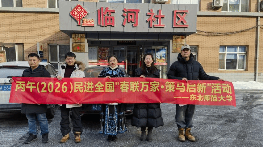 为弘扬中华优秀传统文化,营造喜庆祥和的新春文化氛围,并为居民传递新春美好祝愿,2026年1月27日,民进东北师范大学基层委员会成员走进经济技术开发区临河社区,开展了丙午(2026)“春联万家・策马启新” 活动,马宏艳、石纯生、张岩、呼荣鑫、徐萍等共同参与本次活动。